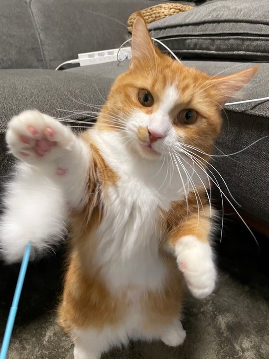 お迎えして2週間ほどはケージの中で安静に過ごしてもらいましたが、体力が付いてきたのか、今は家中を走り回っても呼吸を乱すことがない程に元気に過ごしています。いつも私たちの後に付いてきて、気が付くと側で寝ている、甘えん坊な子になりました。