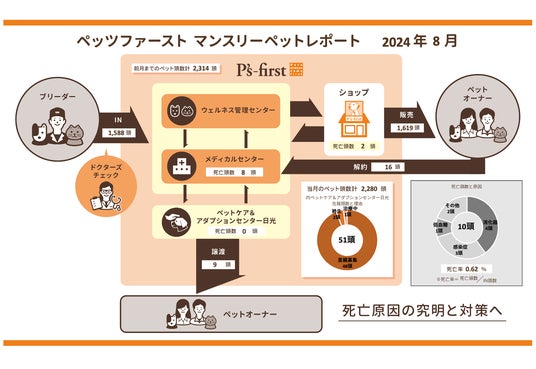 “Pets always come first”を理念に掲げるペッツファーストホールディングス株式会社(本社:東京都目⿊区、代表︓正宗 伸麻)は、傘下のペットショップ「Pʼs-first」の 2024年8月度における流通過程の重要指標をご報告いたします。