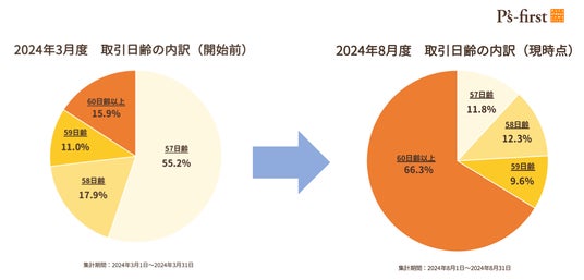 当社取引内における生後60日齢以上の割合は、取り組み開始以前の本年3月度時点では15.9%であったのに対し、8月度は66.3%へ大きく増加しました。今後もこの取り組みを続け、2025年2月末までには、子犬猫ともに生後60日齢以上の取引割合を100%とする予定です。