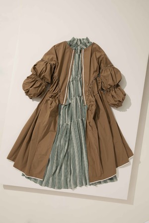 日暮里繊維街にある起業支援拠点「イデタチ東京」で活動するデザイナー石田萌氏が手がけるブランド。サイドはロング、前後はショート丈のコートは、中に着る服で様々な表情を楽しめるデザイン。