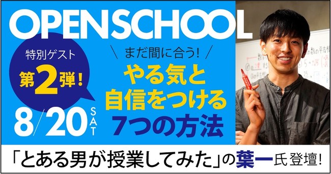 今夏のワオ高校オープンスクールは、特別ゲストに、人気教育系YouTuberとしてチャンネル登録者174万人、再生回数5億回を誇る葉一氏をバーチャルキャンパスに迎え、中高生に、この暑い夏を制する方法を直伝いただいています。7月の「最強の夏休み自宅学習法」に続き、8月の第二弾は、「やる気と自信をつける7つの方法」というテーマでお話いただきます。まさに年間を通じて自分のペースでオンライン学習を続けるワオ高生も参加し、どうしたら自分でやる気になれるか、勉強への自信が持てるようになるか、学ぶためのトークセッションです。夏バテも忘れて、みんなで元気になりましょう!