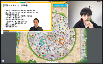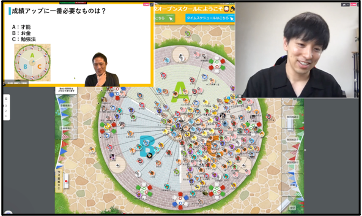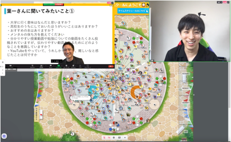 当日は、葉一氏が、自分に合う勉強法の見つけ方や、学習計画の立て方、上手な時間の使い方などについて、わかりやすく説明してくれました。ワオ高生だけでなく、一般から参加した中高生が、バーチャルキャンパスのオンラインツールを使って、葉一さんからの問いに答えたり、チャット欄に質問や感想を書き込んだり、インタラクティブに楽しく進行しました。