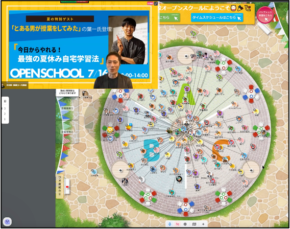 7月16日のワオ高校オープンスクールでは、人気教育系YouTuber葉一氏をゲストに迎えて、『今日からやれる!最強の夏休み自宅学習法』というテーマで、特別公開授業を行いました!一般の参加受付開始後、日本全国から中高生の申込が殺到し、ワオ高校の事務局も嬉しい悲鳴。急遽、バーチャルキャンパスに大きなステージを用意することになりました。