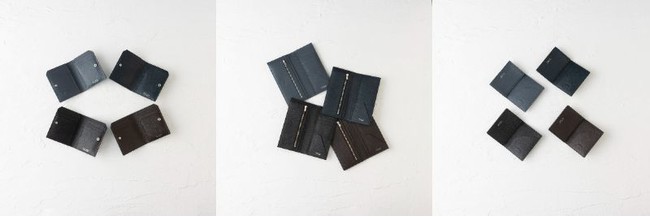 登場するアイテムは、L’arcobaleno定番アイテムとして人気を博す3アイテム。スリム設計ながら7枚のカードが収納できる点が人気の「スマートカードウォレット」、紙幣を折ることなく収納できる点から根強い人気を誇る長財布「二つ折りロングウォレット」、3つのフリーポケットを装備したボックス型の「名刺入れ」が登場します。