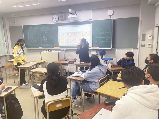 2023年12月14日、同校にて対象生徒に向けたアプリ「くらしスタディ」の説明会および日本語レベルを測るテストを実施。2024年1月12日に日本語担当教員主導のもと、アプリを使った初めての授業が開催されました。日本語教師の資格を持つSUNの社員もアシスタントとして参加しました。