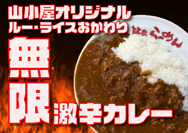 この度、「山小屋オリジナル」となる激辛カレーを商品開発し、一部の店舗において、在庫が無くなるまで、何杯でもおかわり無料の「無限カレー」を販売いたします。