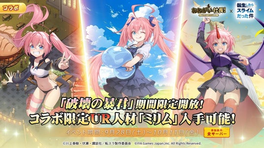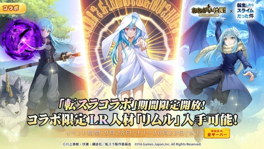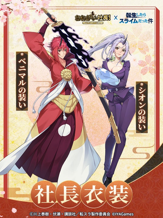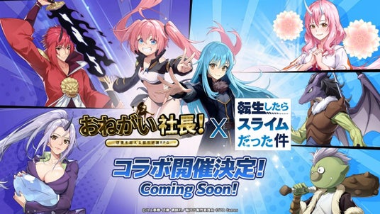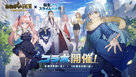 IYAGAMESのスマホ向けの人気会社経営シミュレーションゲーム『おねがい社長!』と、人気アニメ『転生したらスライムだった件』とのスペシャルコラボの実施が決定!2024年9月28日(土)からコラボイベントを開催します!