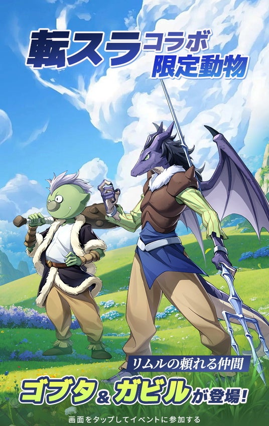 異世界へ転生してスライムになった元サラリーマンリムルは、コラボ限定人材LR人材として入手可能です。レベルアップでキャラクターの外見が解放されます。今回実装される形態は3種類です。