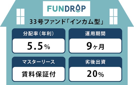 不動産クラウドファンディングサービス「FUNDROP」は、2026年4月6日(月)、「FUNDROP 33号ファンド」の償還および年利5.5%の分配を完了しましたことをお知らせ致します。