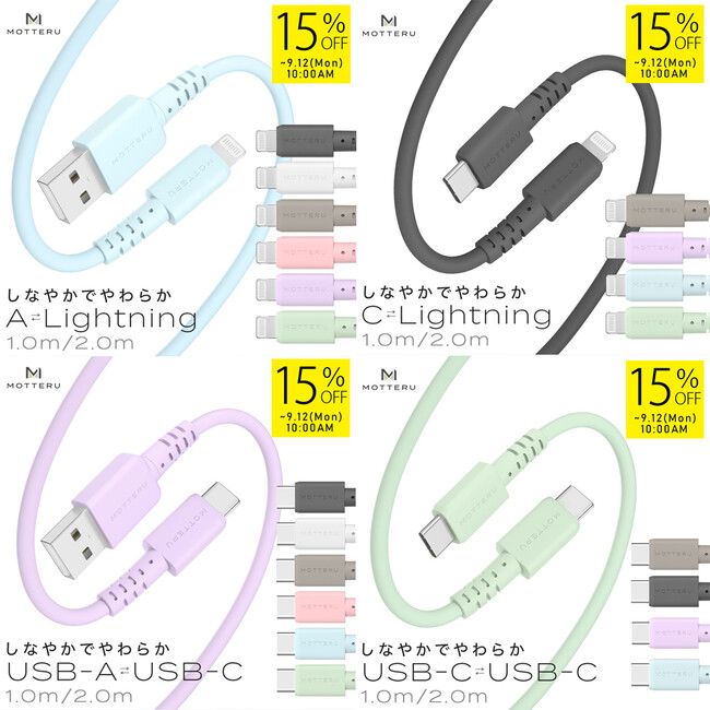 〇しなやかで絡まないシリコンケーブルが15%OFF!