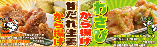 ■商品 :「甘だれ生姜から揚げ」、「わさびから揚げ」