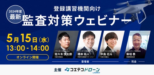ドローンの関連許認可申請とソリューション開発を専門とするバウンダリ行政書士法人(本社:東京都千代田区、代表行政書士:佐々木 慎太郎)は、GMOメディア株式会社(本社:東京都渋谷区、代表取締役社長:森 輝幸)の運営ポータルサイト、コエテコドローンが主催する「登録講習機関向け監査対策ウェビナー」に登壇いたします。2022年12月に導入し約1年半が経過したドローンの国家資格(無人航空機操縦者技能証明)制度。資格取得者が増えるいっぽうで、国家資格の講習をになうドローンスクール「登録講習機関」の現状や課題も顕在化しています。これからは「監査を活用した運用の改善」が各スクールの躍進と今後の国家資格制度普及のカギとなるでしょう。そこで本ウェビナーでは、登録講習機関および事務所約170件の監査をはじめ、登録講習機関の運営サポートなど多数の実績を誇る弊社の代表・佐々木 慎太郎氏と監査管理者・橋本 拓人氏が登壇。これまでの監査実施における実例を踏まえて登録講習機関の現状と課題を振り返り、スクール運営の見直しや改善につながる監査対策のヒントを解説します。さらに正当なスクール運営と円滑な業務を支援するために開発された登録講習機関向けデータ管理プラットフォーム「Droby(R) (ドロビー)」の活用法を、開発者のリーガライト行政書士法人・中島 北斗氏よりご紹介します。これから登録講習機関の開設を予定されている法人様をはじめ、すでに初回の監査実施を終えた登録講習機関の管理様、講習や実地講習・修了審査を担う講師の方まで、ぜひご参加ください!