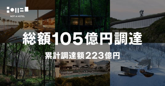 NOT A HOTEL株式会社(東京都渋谷区、代表取締役CEO:濱渦伸次、以下「NOT A HOTEL」)は、2024年11月までに、NOT A HOTEL各拠点の開発を更に加速すると共に、グローバル展開、新規事業開発などへの投資を加速させていくために、複数の金融機関から借入を実施し、デットファイナンスによる総額105億円の資金調達を実施したことをお知らせいたします。