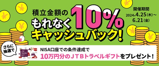 さらに、NISA口座で10,000円以上積立された方の中から抽選で10名様に10万円分の旅行券をプレゼント!