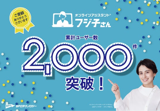 BPOテクノロジー株式会社(本社:東京都中央区 代表取締役社長 :山田真也、以下、当社)は、提供サービスのオンラインアシスタント(R)「フジ子さん」(https://fujiko-san.com/)の累計ユーザー数が2,000件を突破しましたことをお知らせいたします。