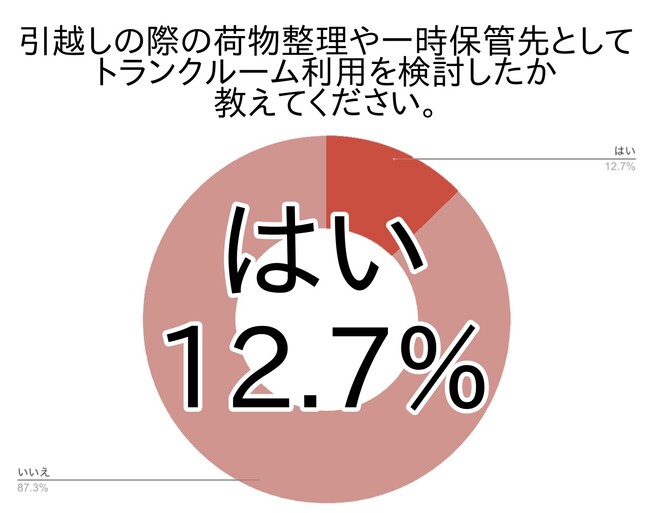 アンケートでは、12.7%の方が引越しの際の荷物整理や一時保管先としてトランクルーム利用を検討したと答えました。