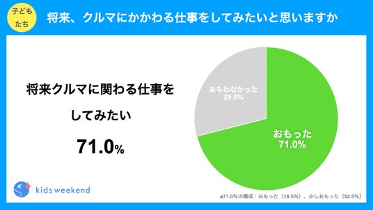都筑内学童施設で開催された授業のアンケートでは、「将来クルマにかかわる仕事をしてみたいと思いましたか?」という質問には「おもった」「少しおもった」との回答が合わせて70%以上となり、授業を通じて子どもたちのクルマへの関心が高まったことが伺えます。