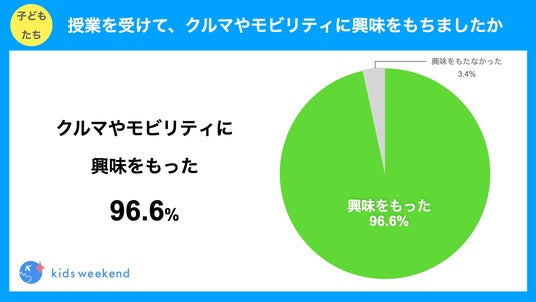 今回もオンライン授業の終了後にアンケートを実施いたしました。主に小学生1年生から小学6年生が参加しており、「授業を受けて、よりクルマ・モビリティに興味をもちましたか」という質問に対しては95%以上の子どもたちが「はい」と答えました。