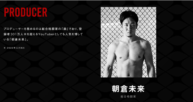 同大会はYUGOが総合プロデュースを、そして登録者数301万人超え(2022年12月現在)の人気YouTuberでもある総合格闘家の朝倉未来がプロデューサーを務め、スペシャルアドバイザーとして総合格闘家の朝倉海、総合格闘家の白川陸斗が参画しています。