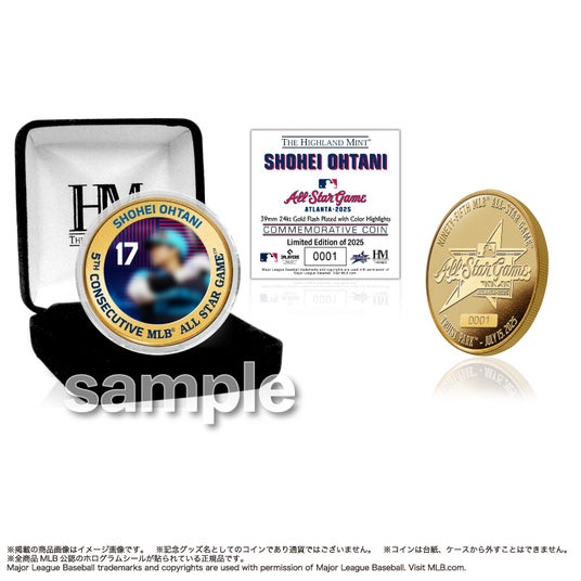 記念フォトには、オールスターゲームでの大谷選手の躍動する姿をスタイリッシュにレイアウト。付属の2枚のコインは、オールスター特別デザインの大谷翔平コインと、大会ロゴを刻印した記念コインという豪華仕様。数量限定2025個・シリアルナンバー入りのコレクターズアイテムです。