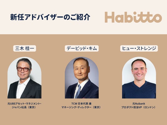 株式会社Habitto(以下、Habitto)は、事業の成長に伴い、アドバイザリーボードを拡充し、グローバルな資産運用およびデジタルバンキング分野で豊富な経験を持つ3名のシニアリーダーを新たに迎えたことをお知らせします。