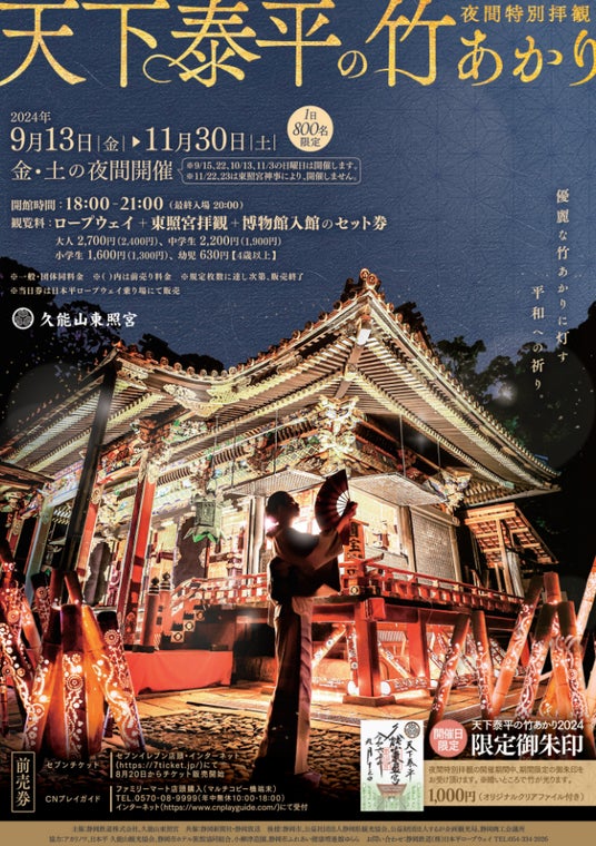 久能山東照宮 9月から夜間拝観 天下泰平の竹あかり2024 徳川歴代将軍名宝展も-静岡