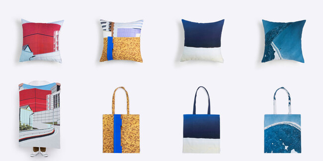「東京」をテーマにした「TOKYO NUDE」と「Dream islands」から厳選4作品を、人気のクッションカバー、フラットサブバッグ、アートブランケットにデザインしました。