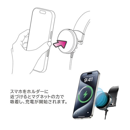 Qi2対応のワイヤレス充電マグネットスマホホルダー(Qi2正規認証品)。