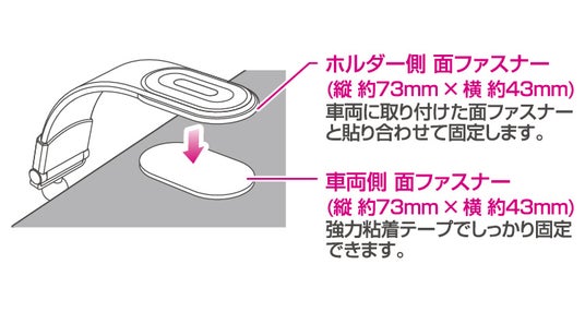 強力粘着テープ(面ファスナー)でしっかり取り付けできます。省スペースで自由度の高い設置が可能です。フレキシブルなロングアームで自在に曲げることができ、ローポジションでの設置も可能です。
