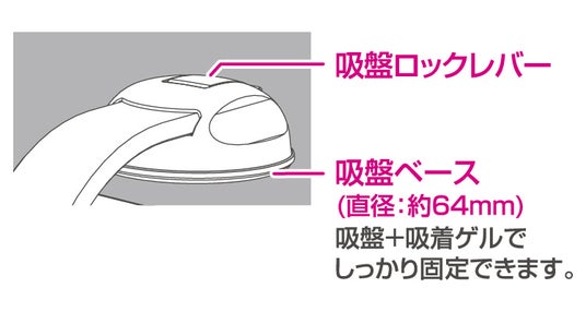 強力な吸盤でしっかりと取り付け可能、吸盤は水洗いすることで、吸着力が復活します。