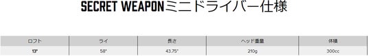PXGの創設者兼CEOであるボブ・パーソンズは次のように語っています。「PXG Secret Weapon(TM)は、上級ゴルファーがティーショットでもフェアウェイショットでも一貫したパフォーマンスを発揮できる多用途性の高いミニドライバーを目指しました。」