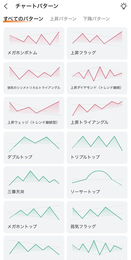 投資初心者も簡単に「ダブルトップ」、「トリプルトップ」や「上昇フラッグ」など、20のテクニカル分析パターンにマッチする銘柄をリストアップすることができるほか、個別のパターンが含まれているかどうかを1秒以内に判断することができ、今後3日間の支持線と予想抵抗線も予想できます。