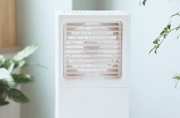梅雨の蒸し暑い時期は「送風のみ」、猛暑日は「送風強+ミスト」で涼しく、冬には「送風弱+ミスト」で加湿器として使い分けができます。