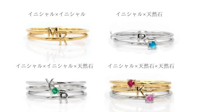 「A~Z」+「&」 27種類のアルファベットから選べるイニシャルジュエリー。17種類から選べる天然石リングもご用意。地金もK10・K18・プラチナ900から選べます。組み合わせ自在なジュエリーです。