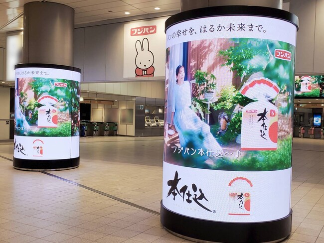 と 9 月 1 日から放送を開始した「本仕込食パン新 CM」を放映し「秋の本仕込キャンペーン」を PR 中です。この1週間は西鉄福岡(天神)駅構内を『フジパン本仕込』が占拠します。