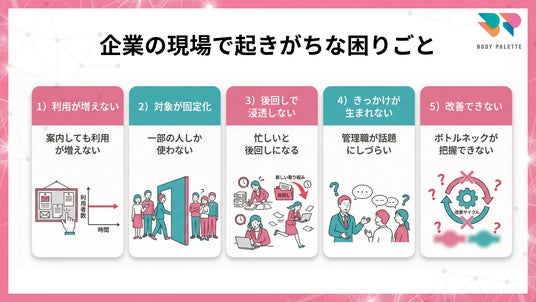 周知しても利用につながらない職場では、次のような困りごとが起きやすくなります。
