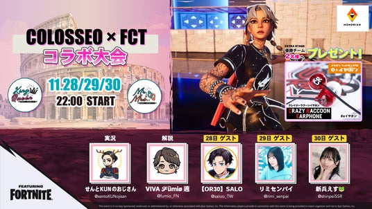 「Colosseo」は、Fortnite上でeスポーツ大会とメタバースを組み合わせた新しい形の大会です。この大会の魅力は、独自に作成されたクリエイティブマップによる斬新でエキサイティングなゲーム体験にあります。従来の大会とは異なり、参加者は大会用に用意された完全オリジナルマップで対戦するため、常に新しい挑戦が待ち受けています。大会の実況配信にもこだわり、視聴者には生き生きとしたプレイの模様を伝えるための工夫がされています。2024年11月に「Colosseo CUP」が実施され、次回大会は、2025年2月を予定しています。