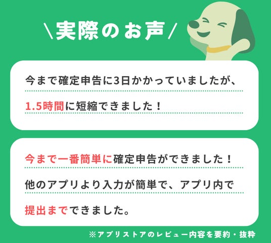 「今までで一番簡単に確定申告ができました!他のアプリより入力が楽で、アプリ内で提出までできました。」