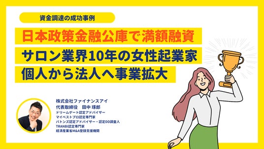 資金調達成功事例-サロン開業~女性起業家支援で日本政策金融公庫の創業融資を満額融資サロン業界10年の女性起業家。個人から法人へ事業拡大。自分ひとりで店舗を運営していた女性起業家の成功物語。