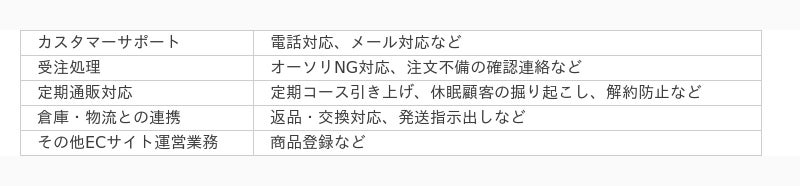 ECサイトのお客様対応や受注処理などの代行をお任せいただけます。