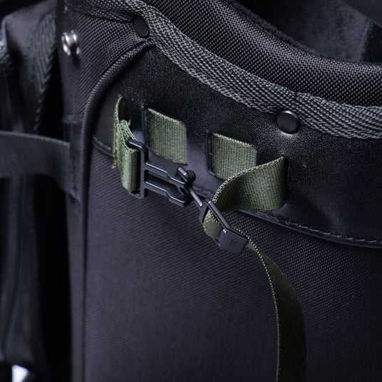 47インチ 9型、口枠は5つのアイコン的キャディバッグは、ドイツのパーツメーカーであるFIDLOCKのマグネットパーツを使用してポーチを取り外しすることが可能です。ボールを入れるポケットはマグネット仕様。ドリンクホルダーの開閉もマグネットです。