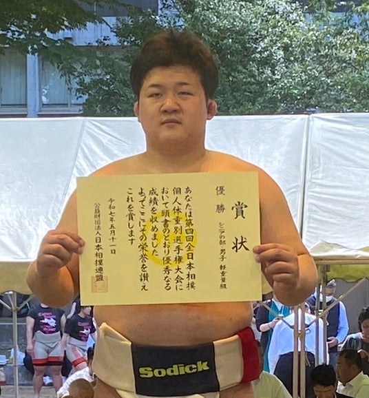 株式会社ソディックは、このたび、2025年5月11 日(日)に靖国神社相撲場で開催された「第4回全日本相撲個人体重別選手権大会」において、当社相撲部に所属する三輪隼斗選手が、シニア男子軽重量級(115キロ未満)で優勝いたしましたことをご報告いたします。三輪選手は、2023年、2024年の同大会のシニア男子軽重量級でも優勝しており、3連覇達成となりました。