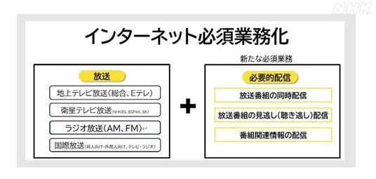 「NHK ONE」とはNHKは、改正放送法により「必要的配信」(テレビ・ラジオの同時配信、見逃し・聴き逃し配信、番組関連情報の配信)が必須業務となったことを受け、2025年10月からインターネットサービス「NHK ONE」を開始しました。