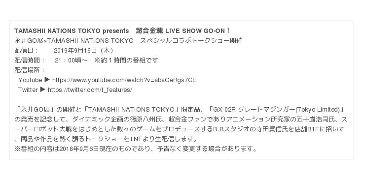 2019年9月19日(木)店舗よりスペシャルトークショーの配信も