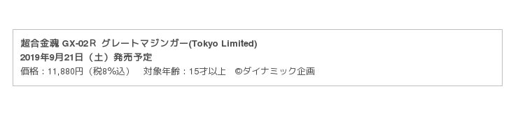 右)「超合金魂 GX-02R グレートマジンガー(Tokyo Limited)」2019年9月21日(土)発売予定