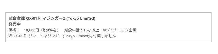 ■TAMASHII NATIONS TOKYO限定品 超合金魂ブランド商品ラインナップ