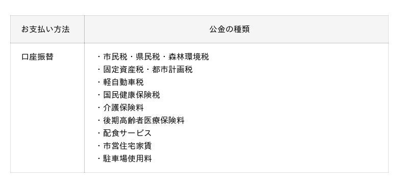 お支払い方法と公金の種類