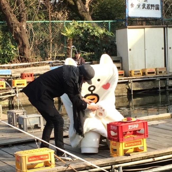 また、その隣で着ぐるみのもっちーがみなさんに「お手」をします。