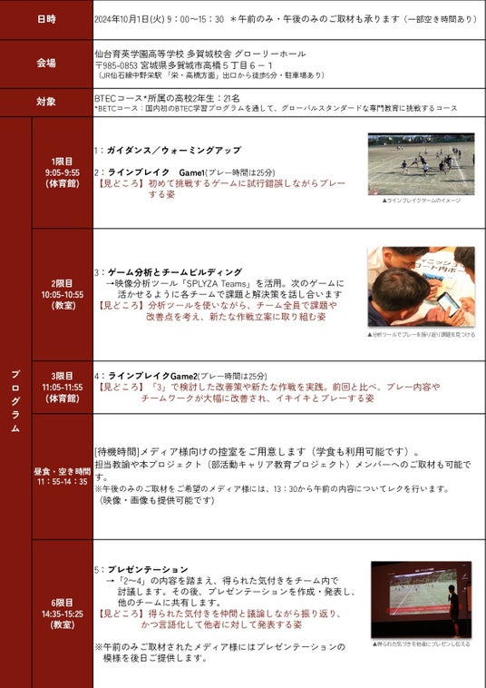 10月1日(火)に仙台育英学園高校で「部活動キャリア教育プログラム」の一環として実施するSPLYZA DAYをご取材いただけます。