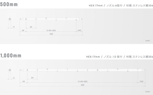 標準仕様は長さ500mmおよび1,000mmの2種類。